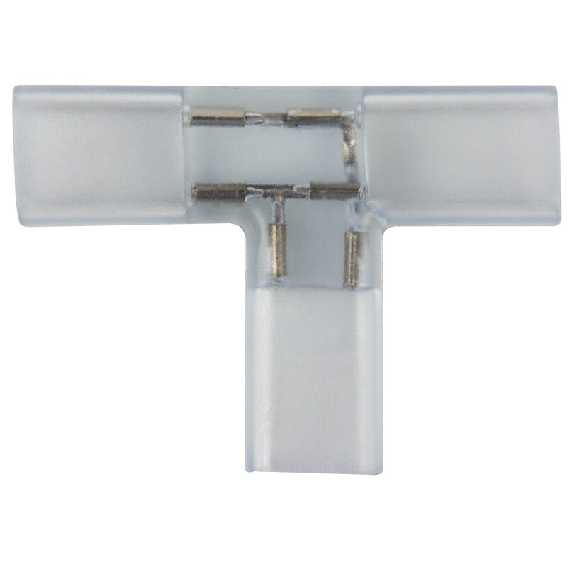 Т-муфта позволяет соединить три отрезка LED ленты 14,5х7,5 мм 230 В NEON-NIGHT.Используется при контуровке фасадов зданий, в местах, где необходимо создавать четкие прямые углы между отрезками.При подключении светодиодной ленты к соединительному разъему (муфте), необходимо заизолировать свободное воздушное пространство соединительного разъема (муфты) морозостойким силиконовым герметиком, предотвращающим попадание влаги. Сверху данного соединения необходимо использовать термоусаживаемую трубку.