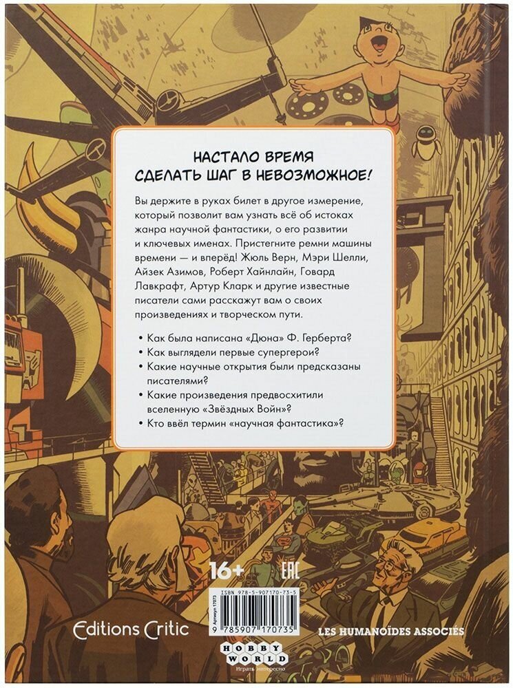 Вы держите в руках билет в другое измерение, который позволит вам узнать всё об истоках жанра, о его развитии и ключевых именах. Пристегните ремни машины времени – и вперёд! Жюль Верн, Мэри Шелли, Айзек Азимов, Роберт Хайнлайн, Говард Лавкрафт, Артур Кларк и другие известные авторы сами расскажут вам о своих произведениях и творческом пути.