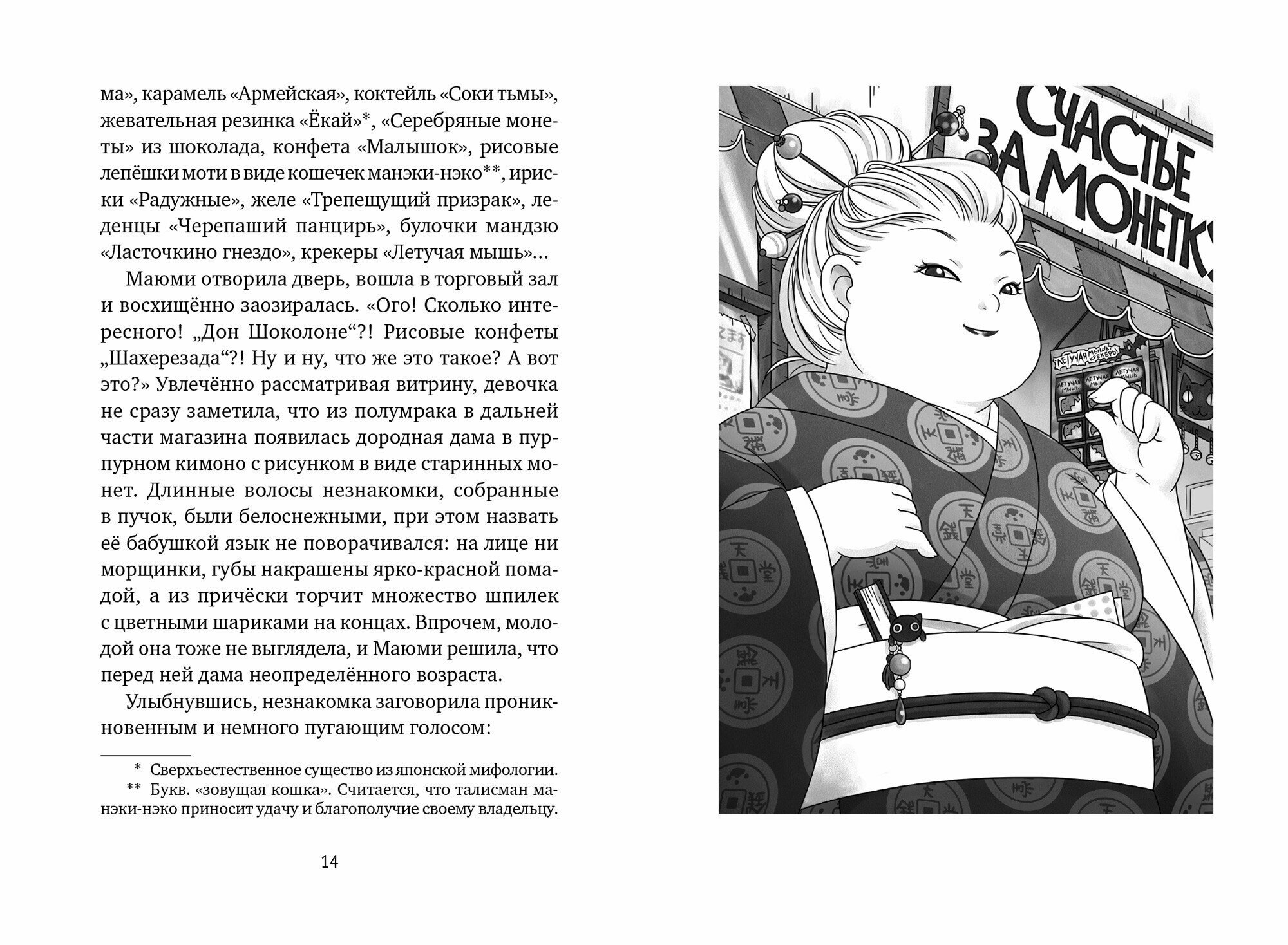 Посетителями в первой книге становятся девочка-школьница 11 лет, сестра с братом 7-ми и 9-ти лет, 21-летняя девушка, мальчик 8-ми лет, мужчина 28-ми лет и молодая девушка, купившая подарки для малышей 4 и 6-ти лет. Принесет ли каждому из них счастье купленная сладость?