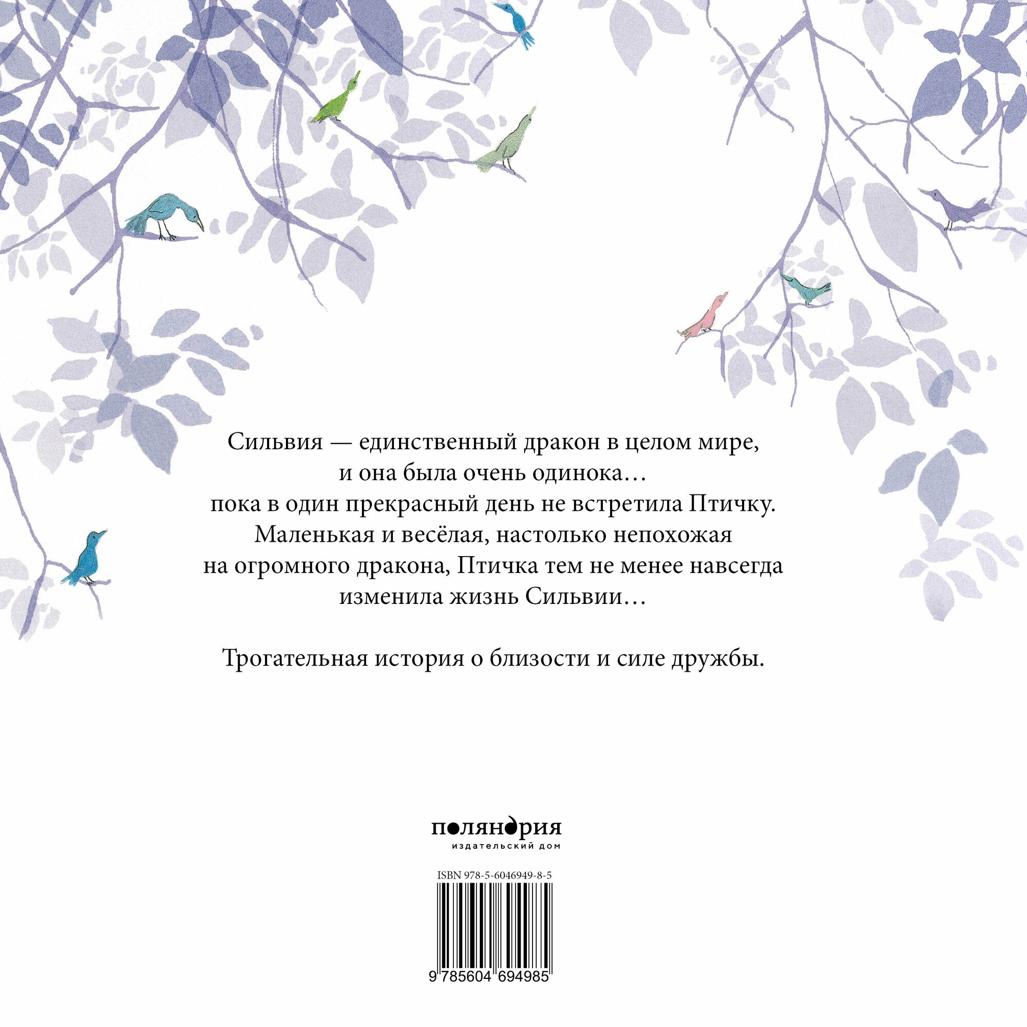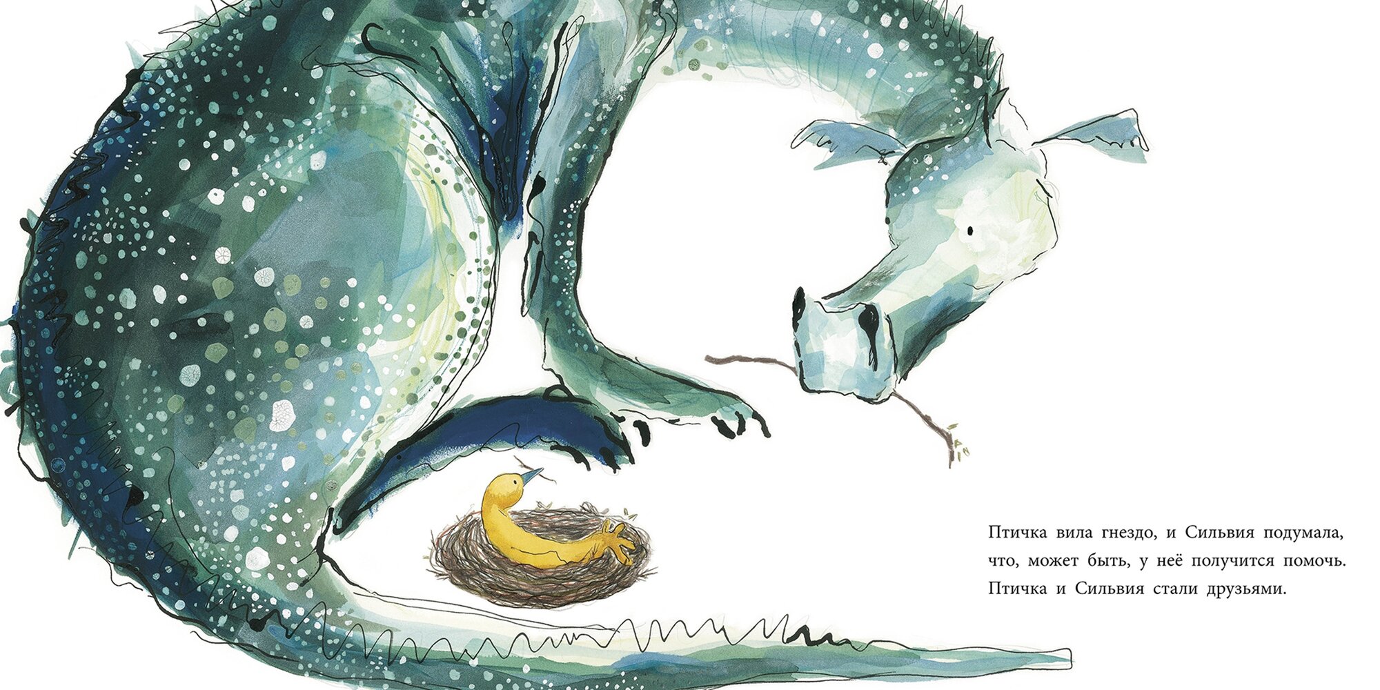 Это история про дружбу непохожих. Блестяще-переливающаяся дракониха Сильвия очень одинока. Но однажды она встречает птичку и решает ей помочь со строительством гнезда. Так начинается их дружба.