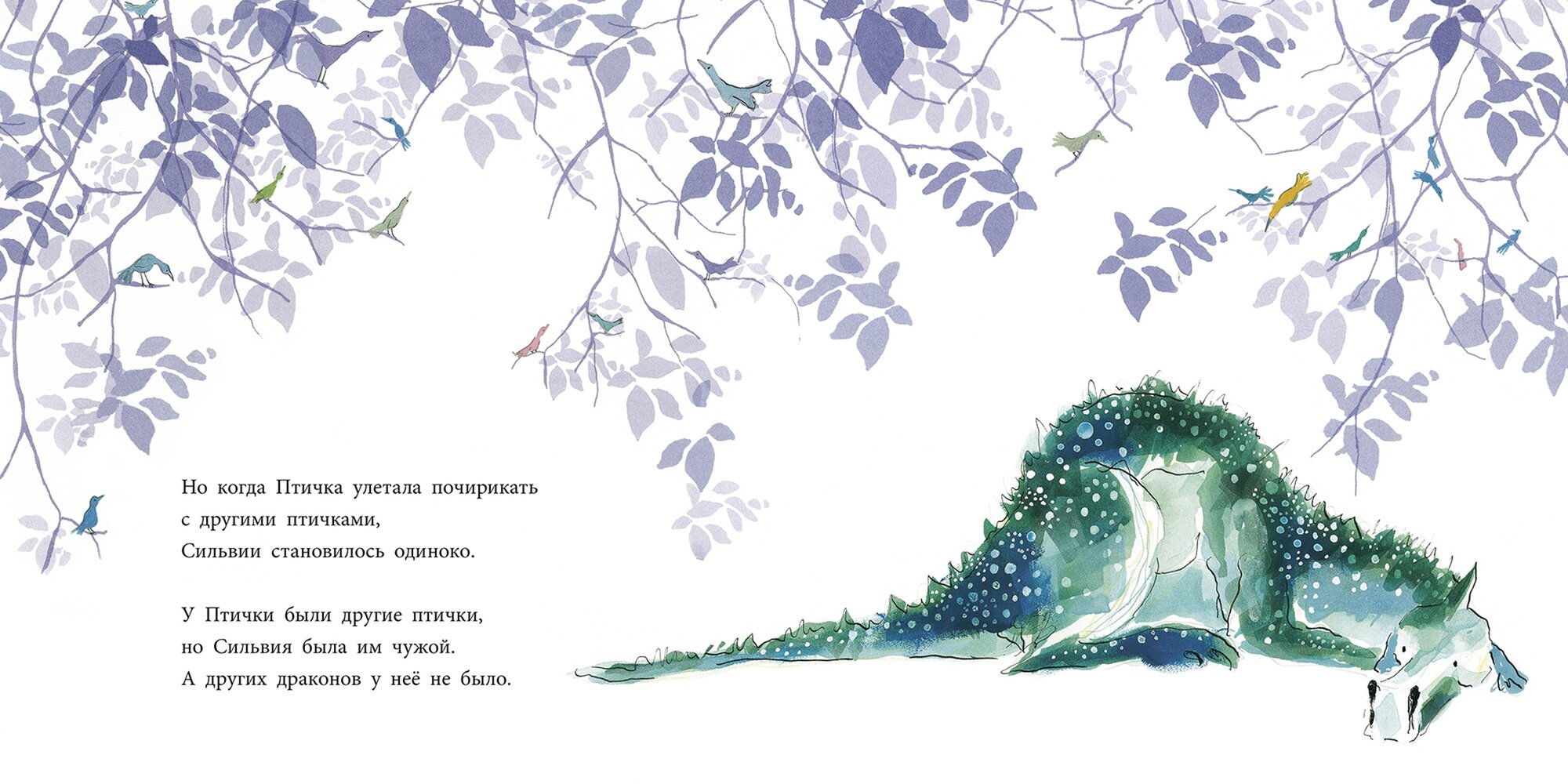Иногда птичка улетала к другим птицам. И тогда Сильвии снова становилось одиноко. И она решает поискать других драконов.