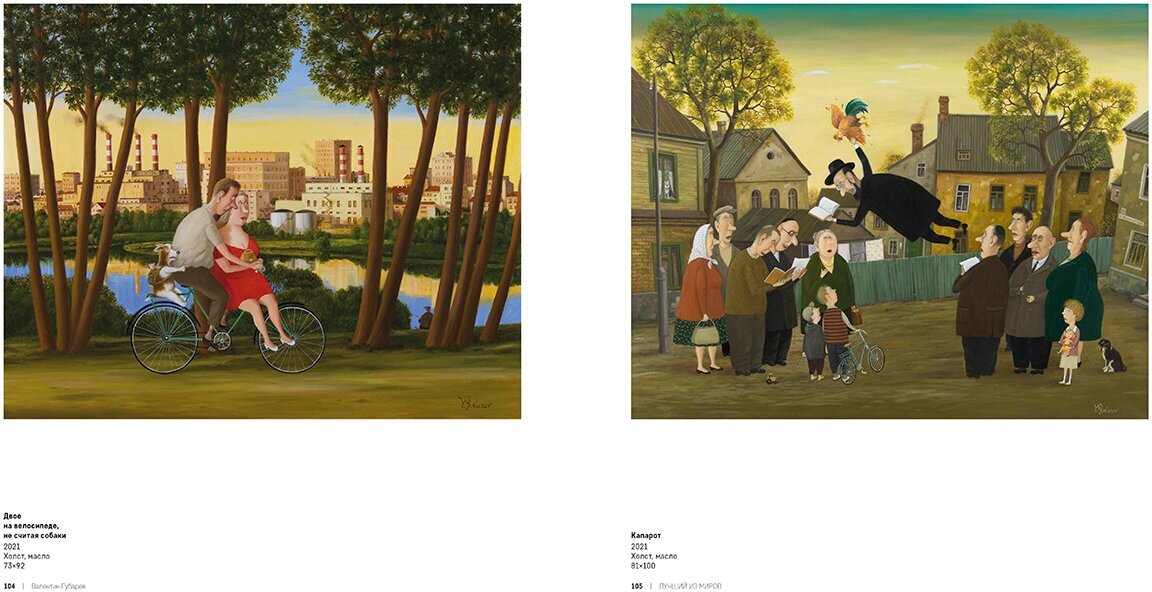 В альбоме представлены изумительные работы замечательного художника Валентина Губарева.В них любовь,теплота к людям,к нашей Родине,к природе,такой знакомой и близкой.Посмотрев работы этого художника думаешь:"Никакая Турция с "таиландами" нам не нужны".И сами персонажи картин такие,что их начинаешь любить,все в них знакомо,узнаваемо:мелочи быта,интерьера.Душа отдыхает,наполняется теплом.Я уже заказал и получил календарь на 2023 год ,альбом В.Губарева "На земле,напротив неба".Заказываю и его альбом большего формата "Лучший из миров".Спасибо художнику и "Лабиринту"!!!