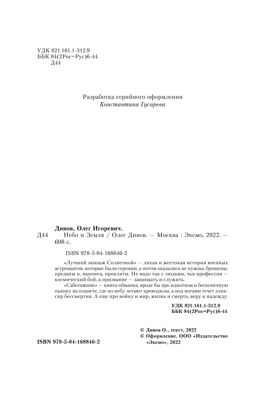 Книга: Небо и Земля (Дивов Олег Игоревич); ООО "Издательство "Эксмо", 2022