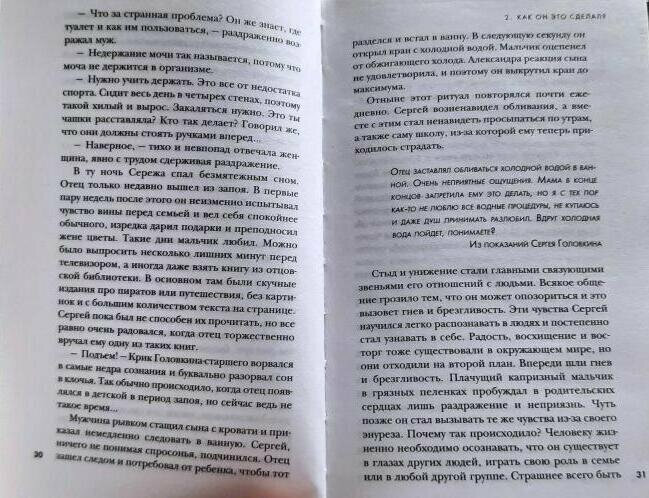 Я прочла всю книгу и поняла, что этот автор не мой. На мой взгляд слишком много отсебятины, особенно в описании убийства последних трёх мальчиков. Всё понимаю, Бондарчук кино снимает, тема хайповая, но зачем тут-то отсебятину пороть? Это просто неуважение какое-то к памяти жертв. Непонятно, зачем имена жертв изменены, если все остальные имена настоящие. Непонятно, зачем вставлять непроверенные слухи, в частности о попытках Головкина соблазнять парней. Кто-то прочитает и будет думать, что вот оно так и было. А было ли на самом деле - мы уже не узнаем.