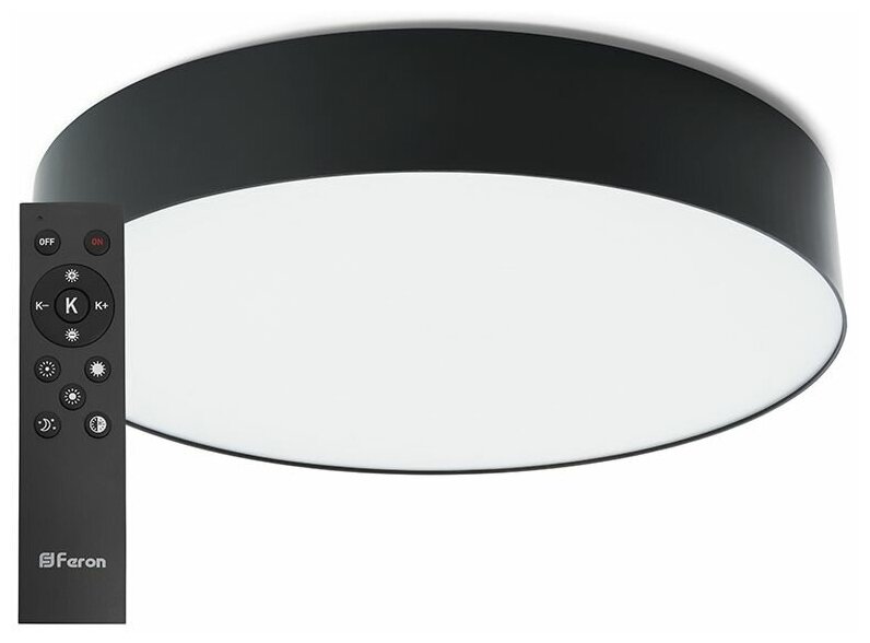 Светильник накладной светодиодный, потолочный управляемый (ДПО) FERON AL6200, 80W, 3000К-6500K (теплый-белый-дневной), 230V, 4800Lm, IP20, угол рассеивания 120°, цвет черный, корпус штампованная сталь, рассеиватель матовый пластик и металл, 500*500*85.