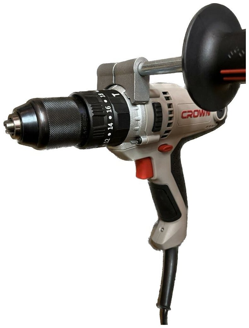 Сетевой шуруповерт CROWN применяется для сверления отверстий, а также закручивания резьбовых соединений. Быстрозажимной патрон гарантирует простую смену оснастки. Электронная регулировка оборотов помогает выбрать оптимальную скорость для работы в зависимости от плотности материала и диаметра оснастки. Функция реверса упрощает выведение застрявшего в материале сверла.Преимущества Быстрозажимной патрон 2-х скоростной редуктор Электронная регулировка скорости Регулировка крутящего момента Встроенный LED фонарь Обрезиненная рукоятка Дополнительная рукоятка