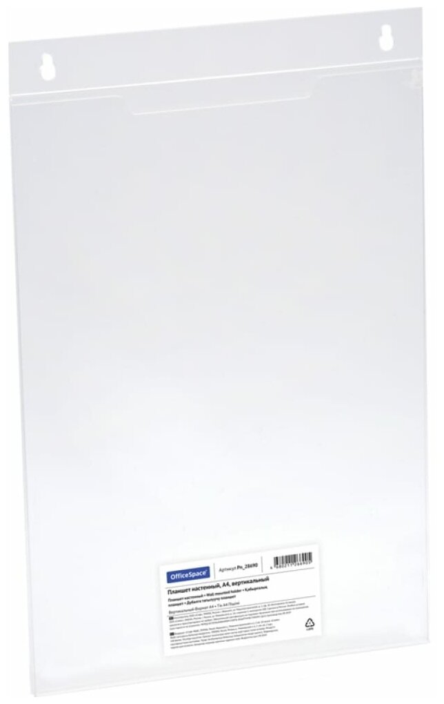 Планшет настенный, вертикальный. Изготовлен из прозрачного акрилового стекла. Подходит для размещения листовок и иной рекламной продукции. Крепление на стену производится через два верхних отверстия или посредством самоклеящихся полосок (в комплект не входят).