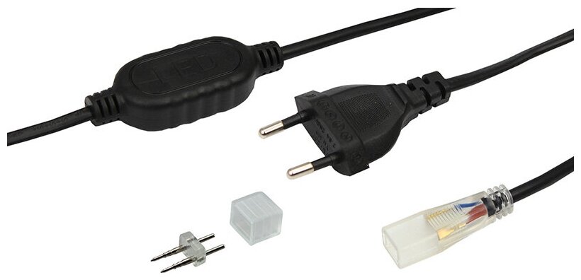 Готовый набор необходимых принадлежностей для подключения светодиодной ленты в сеть 220 В. Подходит для подключения лент 220 V со светодиодами SMD5050.При подключении светодиодной ленты к соединительному разъему (муфте), необходимо заизолировать свободное воздушное пространство соединительного разъема (муфты) морозостойким силиконовым герметиком, предотвращающим попадание влаги. Сверху данного соединения необходимо использовать термоусаживаемую трубку.