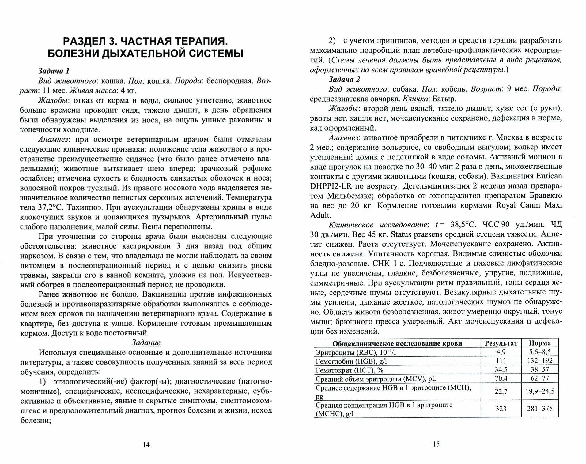 Учебное пособие адресовано студентам, обучающимся по специальности "Ветеринария", включает задачи по диагностике заболеваний, профилактике и терапии болезней животных разных видов и возрастных групп. Задачи составлены с учетом индикаторов достижения компетенций в соответствии с требованиями ФГОС 3++. Пособие является необходимой частью внеурочной работы студентов и позволяет закрепить теоретические и практические навыки, полученные во время контактной работы, подготовиться к текущей, промежуточной и итоговой аттестации.