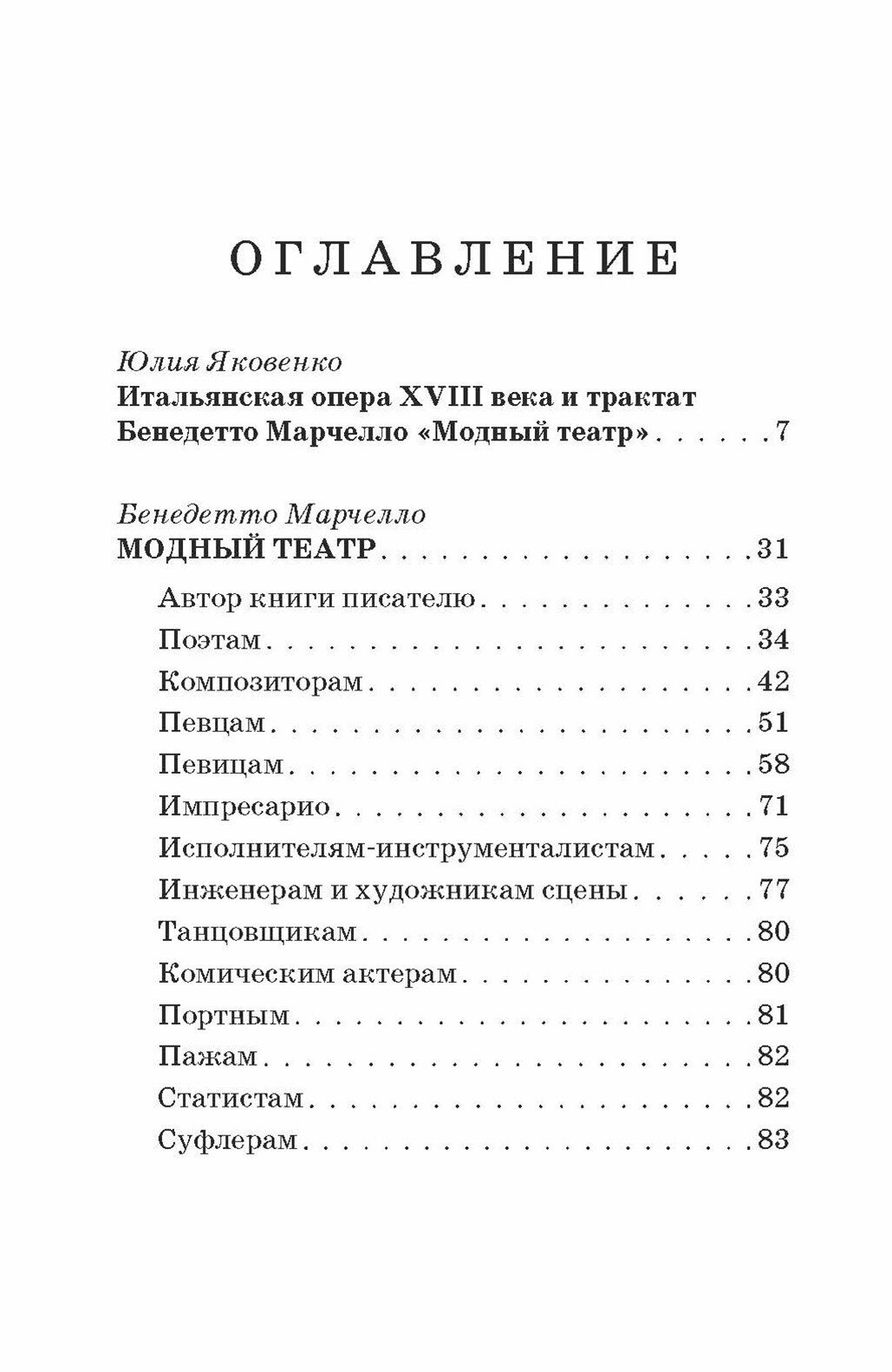 Трактат Бенедетто Марчело "Модный театр" является уникальным памятником музыкальной культуры XVIII в. Именитый венецианский патриций, завоевавший славу не только как как композитор, но и как видный политический деятель, в этом опусе подробно описывает процесс создания оперного спектакля. Перед читателем разворачивается яркая картина закулисной жизни барочного музыкального театра. Интриги импресарио, невежественность композиторов, снобизм певцов выносятся автором на суд публики. Однако, сатирическими выпадами Марчелло не ограничивается. "Модный театр" имеет особую ценность как важный источник информации по истории становления музыкального искусства, в котором можно почерпнуть бесценные сведения, касающиеся специфики барочной оперы. Трактат был и остается одним из самых популярных и репрезентативных публицистических сочинений XVIII в., он впервые выходит в печати на русском языке в полном объеме.
