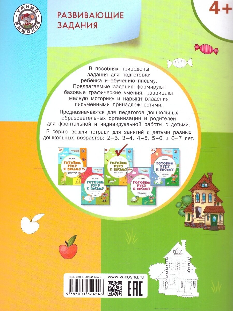 Развивающие задания Готовим руку к письму тетрадь для занятий с детьми 4-5 лет (Ульева Елена Александровна); Вакоша, 2022