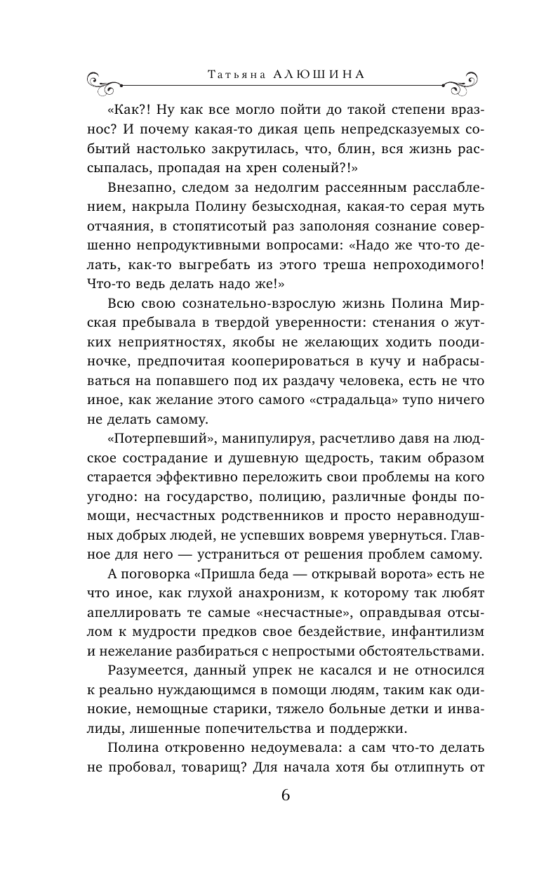 Алюшина представляет очень жизненные ситуации, с которыми в той или иной мере сталкивалась практически каждая женщина. Кажется, ее романы никогда не перестанут быть актуальными.