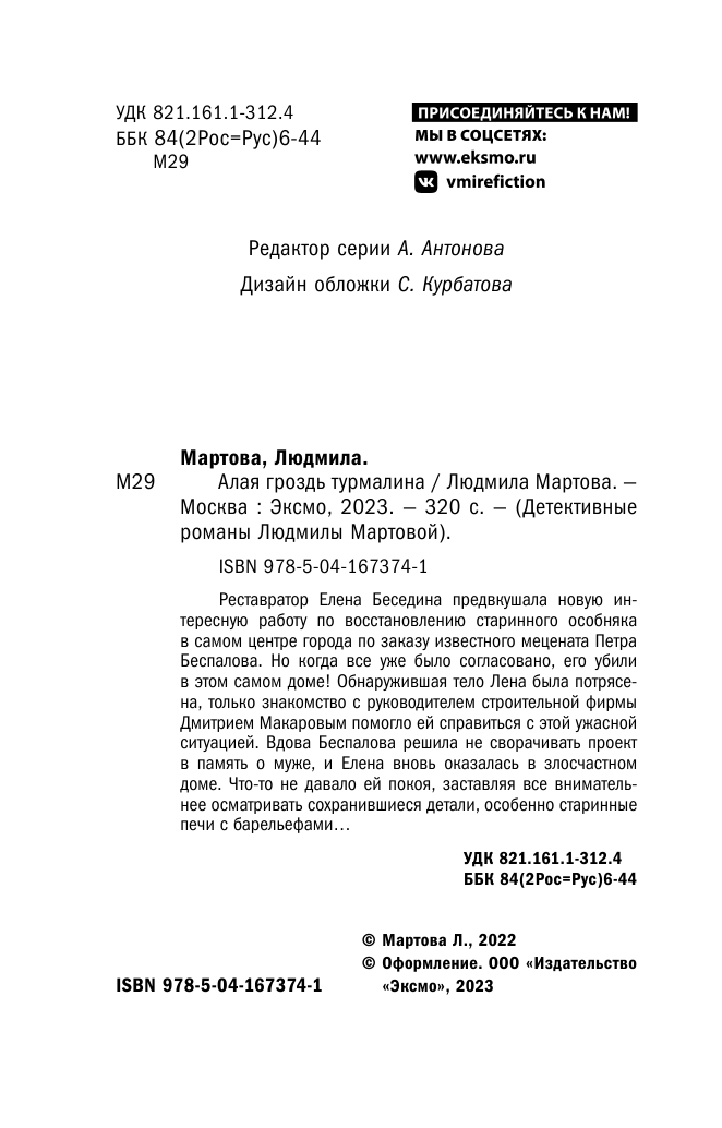 Книга: Алая гроздь турмалина (Людмила Мартова); Эксмо, Редакция 1, 2023