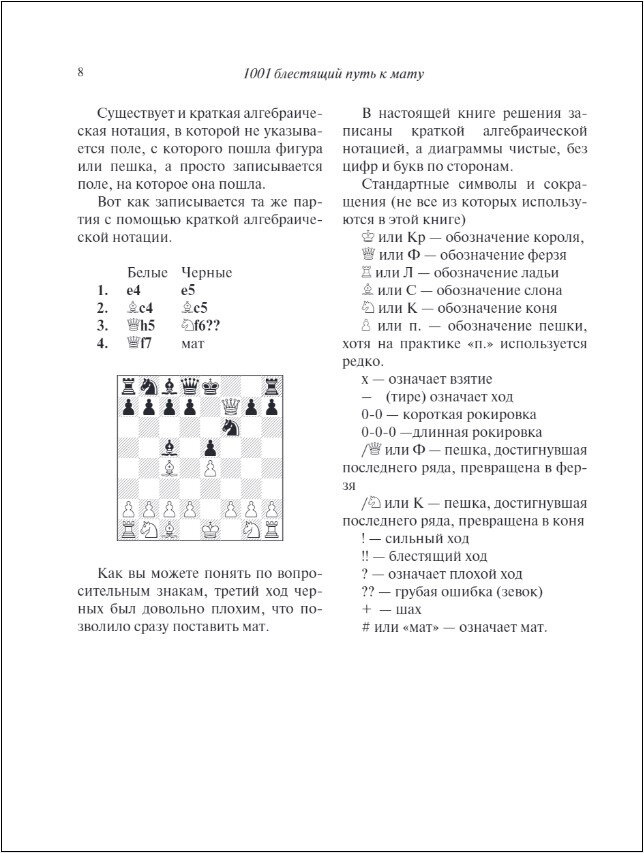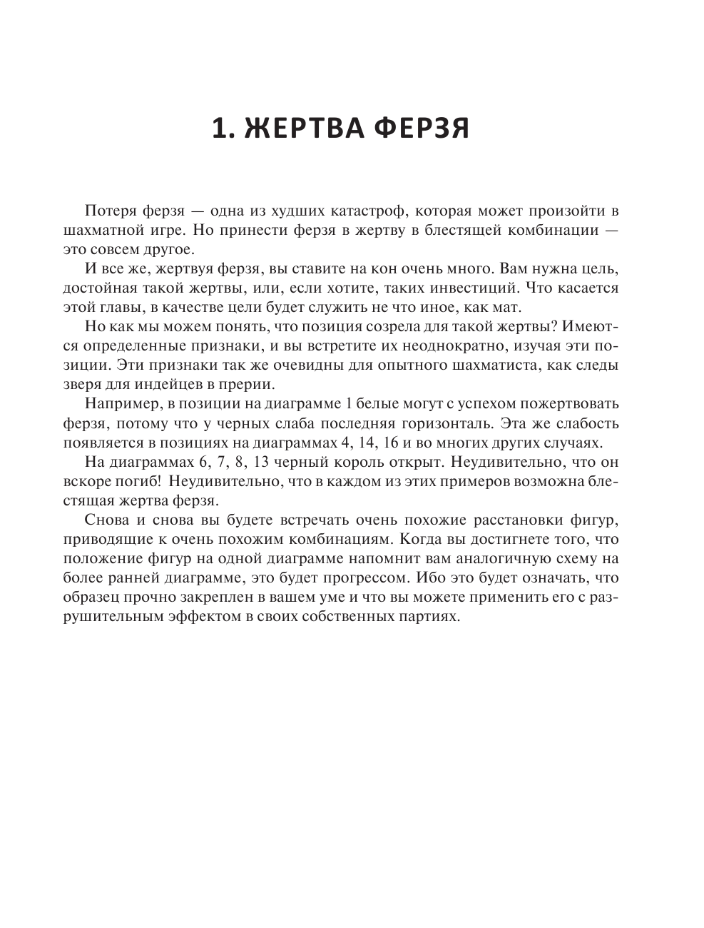 С недавнего времени я научилась играть в эту невероятно интеллектуальную игру. Я просто, честно говорю, вояюблась в шахматы! С каждым днем мое мышление все развивается и развивается. И вот я наткнулась на эту книги! Это просто находка!! С помощью нее, я уже столько раз выиграла. Но плюсы не только в этом. Там очень много разных комбинаций, которые я запоминала, и это мне помогало расширять свой кругозор и смотреть на игру шире. В общем любителям, и так сказать новичкам-любителям это пойдет на пользу!