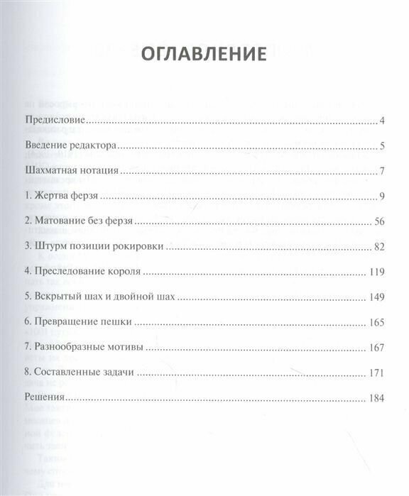 Отличный сборник шахматных заданий для уровня 3-2 разрядов, некоторые позиции будут полезны и перворазрядникам. Поскольку сборник достаточно стар, то большинство позиций можно встретить в других изданиях, особенно у отечественных компиляторов. А в целом, решение задач из этого пособия принесет не только практическую пользу, но и эстетическое наслаждение. Из предисловия составитель утверждает, что прорешав все 1001 задачу стал мастером спорта, что явно преувеличено. Качество: отличное, закладка....