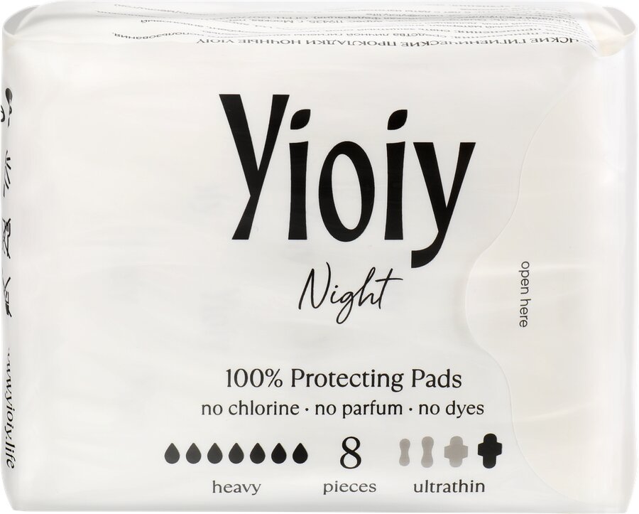 Ночные гигиенические прокладки «YIOIY» (8 шт. в стильной упаковке) мягкие и очень нежные, не отбеливаются хлором, нет ароматизаторов, нет красителей.