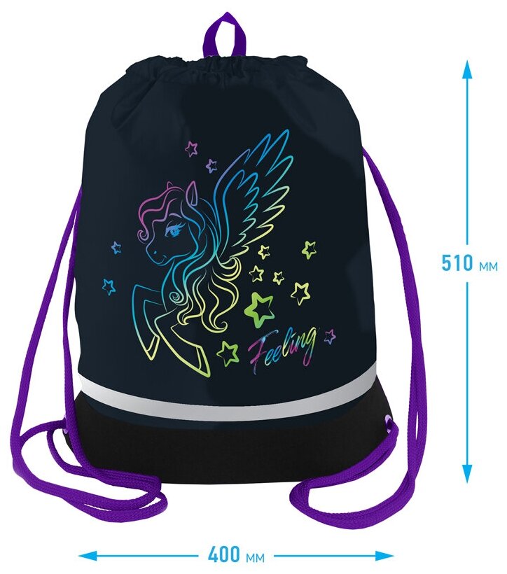 Вместительный мешок для обуви Berlingo Pegas оснащён широкими шнурками, расширяющимся дном и петлей для подвешивания. Размер изделия 510х400 мм. Модель изготовлена из плотного полиэстера 300D и имеет задний карман на молнии. Световозвращающие элементы обезопасят в тёмное время суток. Мешок идеален как для зимней обуви, так и для спортивной экипировки. Индивидуальная упаковка в пакет. • Размер: 510*400 мм,• Материал: полиэстер,• Количество отделений: 1,• Световозвращающие элементы: да,• Расширяющееся дно: да,• Пол: для девочек.