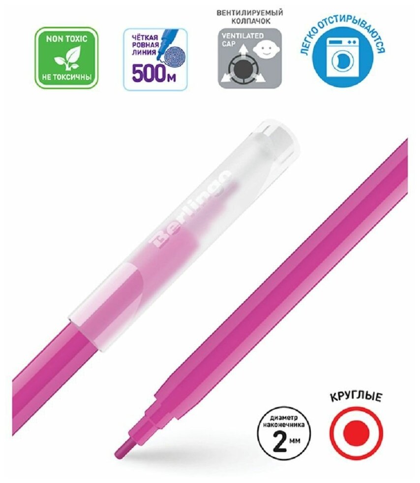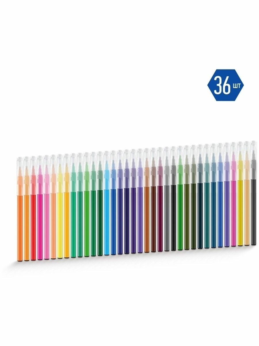 Фломастеры Berlingo серии «Жил-был кот» представлены с легкосмываемыми чернилами и вентилируемым прозрачным колпачком.Толщина линии составляет 2 мм, а длина линии письма - не менее 500 метров. В наборе 36 цветов. Корпус круглой формы изготовлен из полипропилена и имеет удобную круглую зону захвата. Тип наконечника – конический. Смываемые фломастеры на водной основе нетоксичны. Набор фломастеров упакован в блистер с европодвесом.• Количество цветов: 36• Тип наконечника: конический,• Длина линии письма: 500 метров.