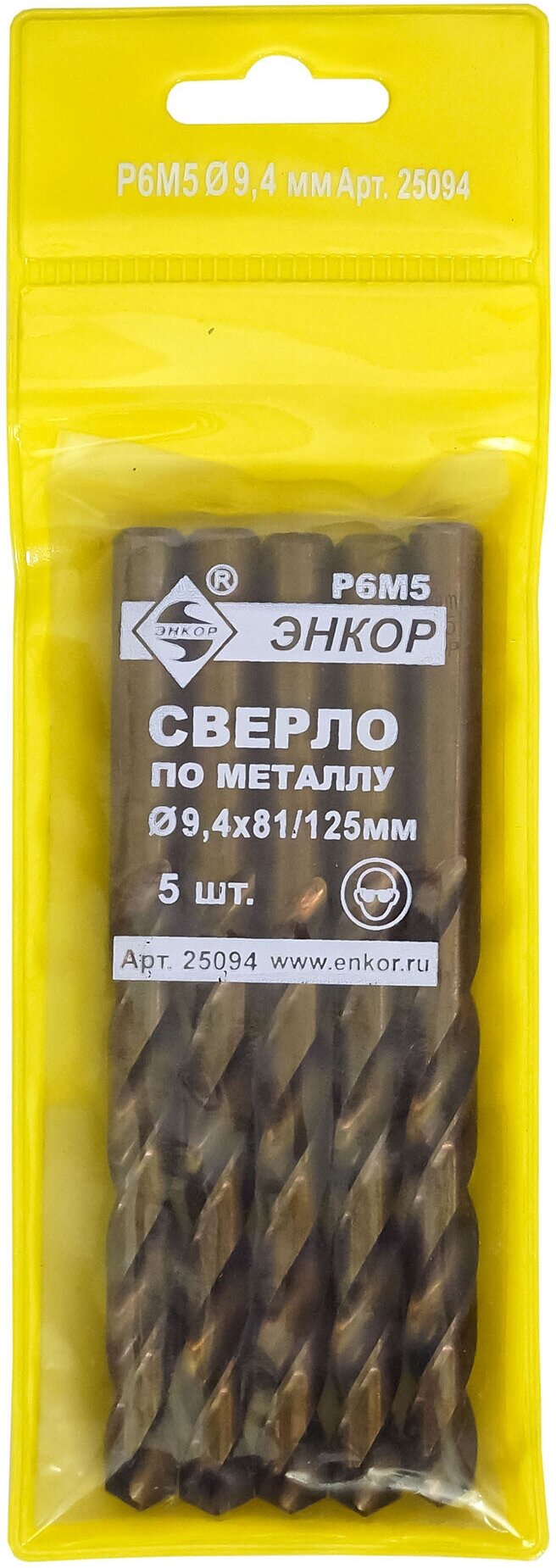 Сверло по металлу (9,4 Р6М5) Энкор изготовлено из высокопроизводительной быстрорежущей стали с высоким содержанием вольфрама и молибдена (W6Mo5Cr4V2). Предназначено для сверления отверстий в металлических конструкциях. Поверхность свёрл полностью шлифована. Сверло имеет две режущие кромки и две спиральные канавки для отвода стружки.Угол режущей части 135? в сочетании с крестообразной подточкой перемычки позволяет работать без предварительного кернения заготовки.