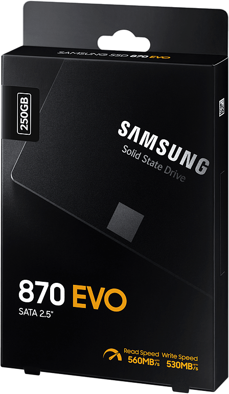 Накопитель SSD 2.5'' Samsung 870 EVO 250GB SATA 6Gb/s V-NAND 3bit MLC 560/530MB/s IOPS 98K/88K MTBF 1.5M MZ-77E250B/EU