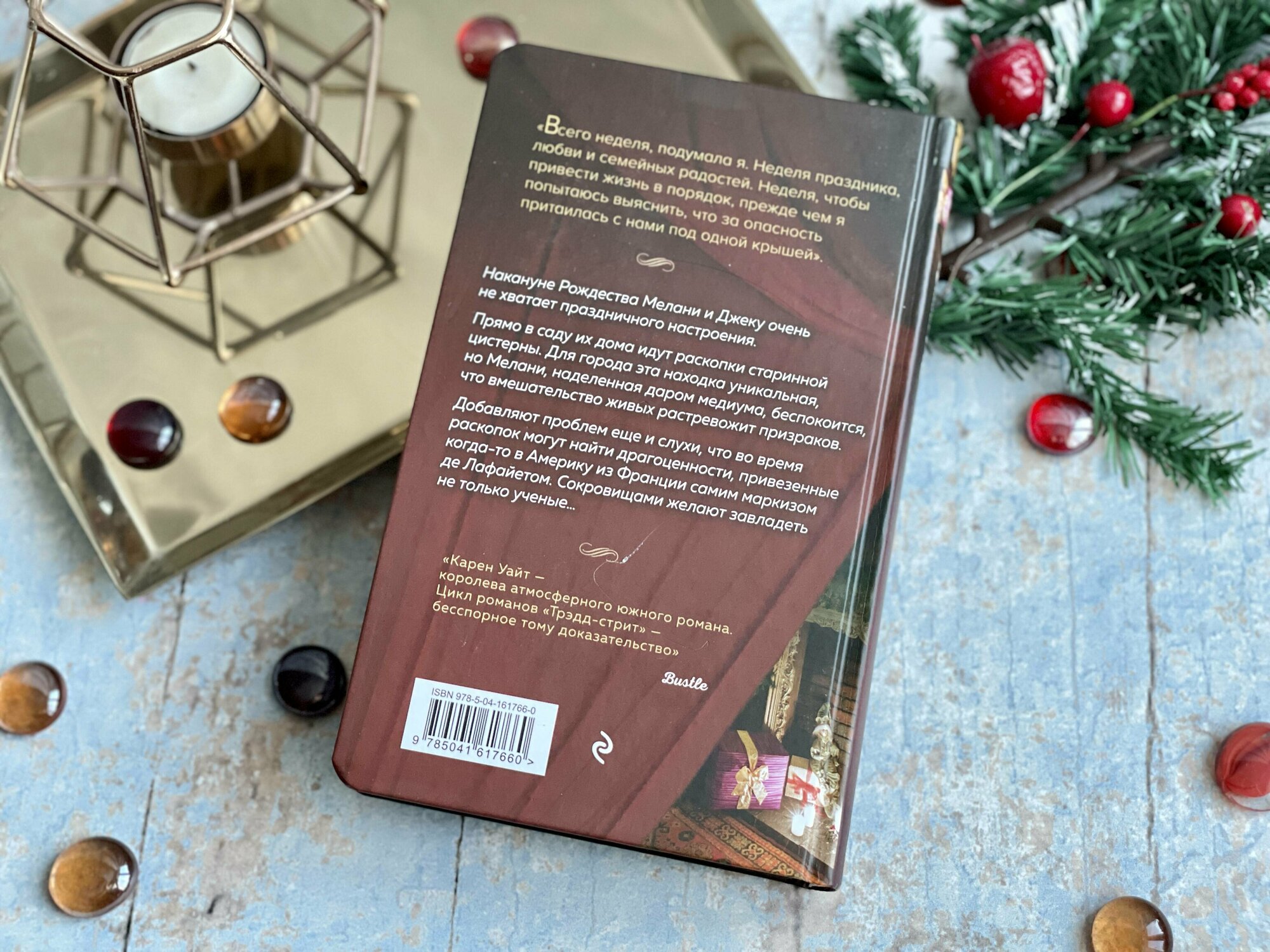 Обожаю все истории про Трэдд-стрит, рада шестой и, надеюсь, не последней книге. Потрясающее оформление, очень красивые страницы со скругленным страницами, удобно носить с собой в сумочке. Мелани стала одним из самых любимых персонажей, она умеет быть сильно, умной и слабой одновременно. Теперь у нее большая семья, муж, и трое детей, двое своих и приемная дочь. Вся эта компания продолжает жить в особняке с привидениями, среди которых снова находятся не самые дружелюбные. Археологи находят в саду старинное сооружение, как потом окажется, с кирпичами с фамильного кладбища Вандерхорстов. Хозяевам особняка является безглазый призрак в костюме 18 века, один из героев попадает в автокатастрофу, так как рулем его машины завладела неведомая сила, а в отца героини вселяется неизвестный хромой дух. Хорошенькое начало праздника, верно? Мелани начинает собственные раскопки, путь приводит ее на плантацию, когда-то принадлежавшую Вандерхорстам. Здесь разыгралась кровавая драма, и в центре истории оказались французские сокровища, о которых сегодня рассказывают только легенды. Мне нравится атмосфера в книгах Карен Уайт, она захватывает, но не пугает. И здорово, что старинные тайны отражаются в историях наших современников, которых тоже гложут ревность, жадность, зависть и другие страсти.