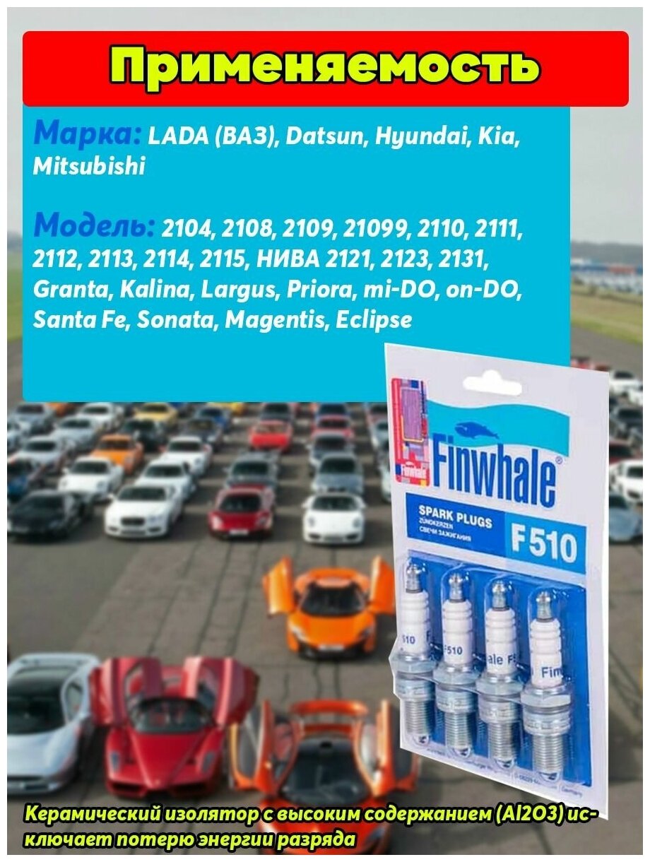 свеча зажигания FINWHALE F-510 LADA 2108-10 8 кл инж/CHEVROLET Niva/Kalina/Granta 4шт (F510)