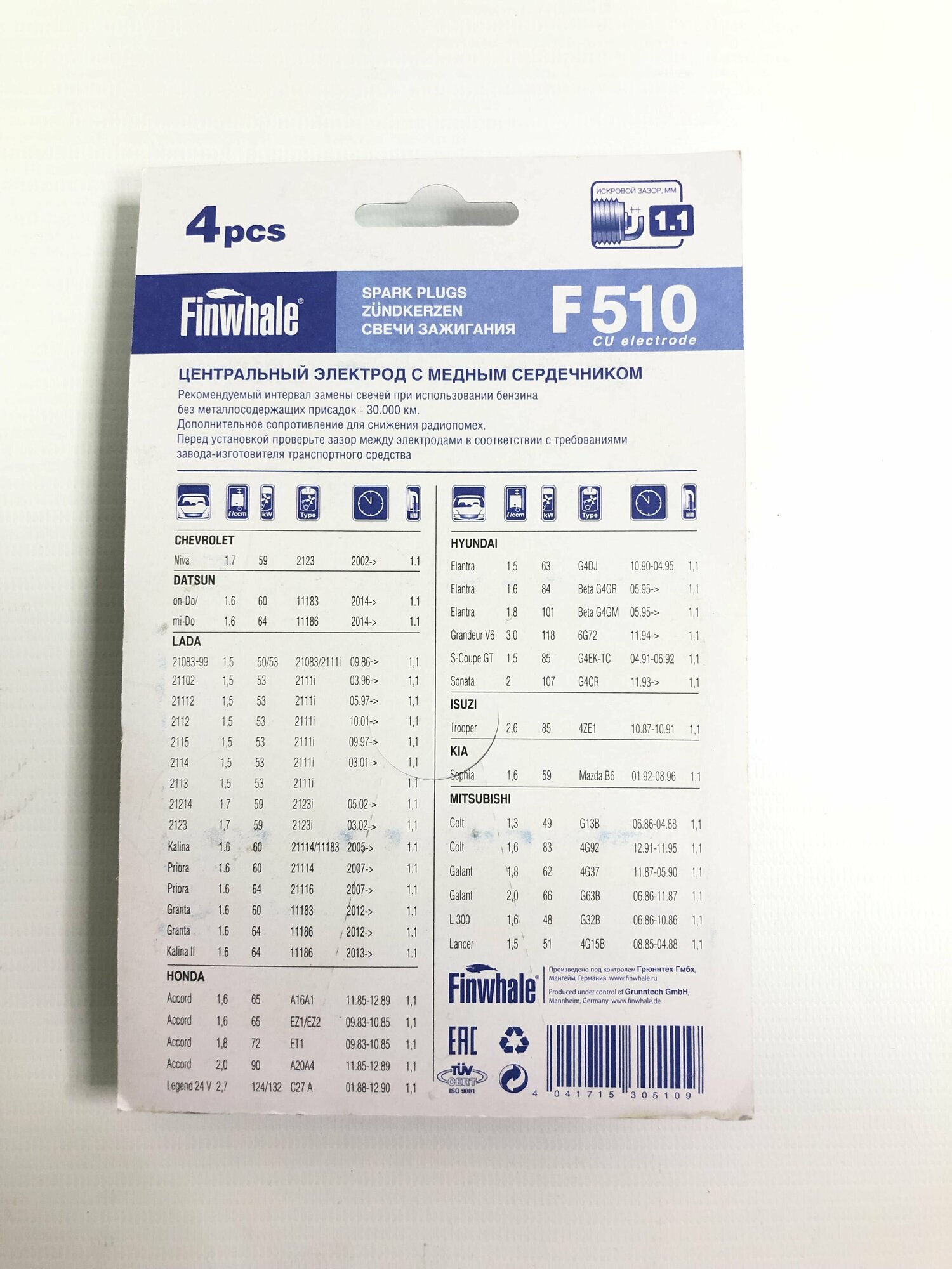 На сегодняшний день товар «свеча зажигания FINWHALE F-510 LADA 2108-10 8 кл инж/CHEVROLET Niva/Kalina/Granta 4шт (F510)» можно купить с кешбеком в 1 магазине: Яндекс.Маркет