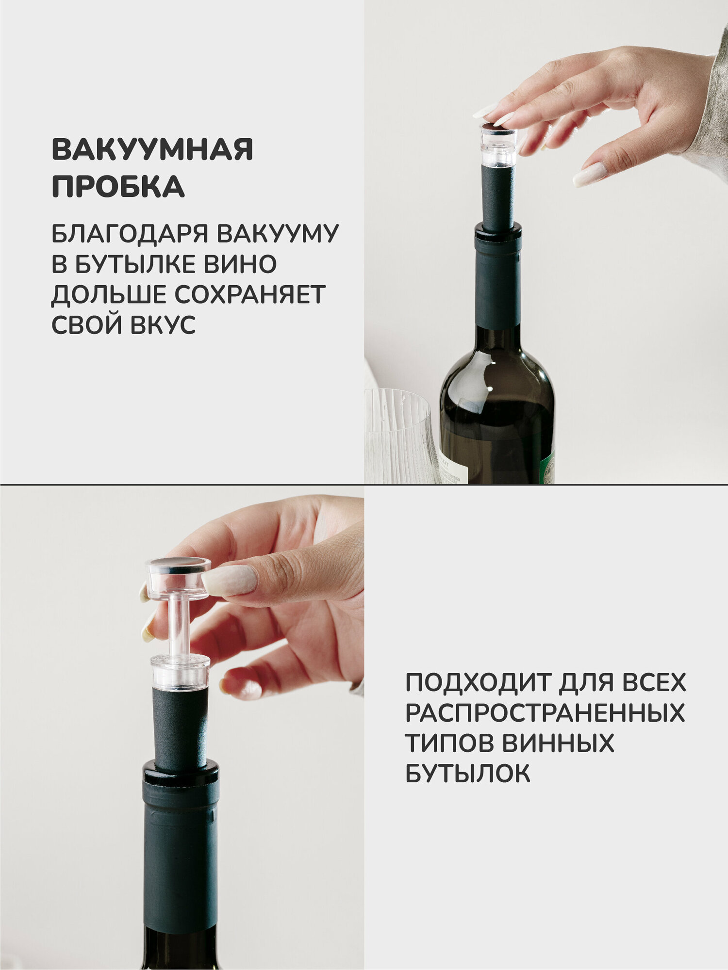 | Особенности конструкции | аэратор для вина; вакуумная пробка; обрезатель фольги |