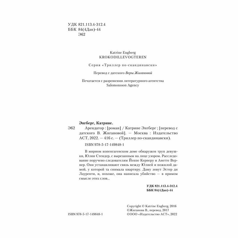 Книга: Арендатор (Энгберг Катрине); ИЗДАТЕЛЬСТВО "АСТ", 2022
