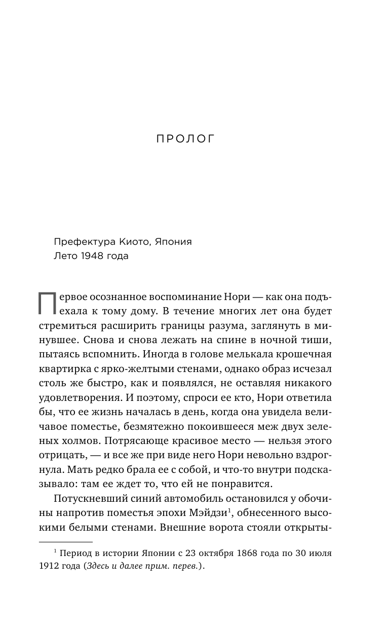Киото, Япония, 1948. Маленькую Нори надежно прячут от посторонних глаз. Многие годы она живет в доме своенравной бабушки, которая видит в ней лишь незаконнорожденную наследницу.