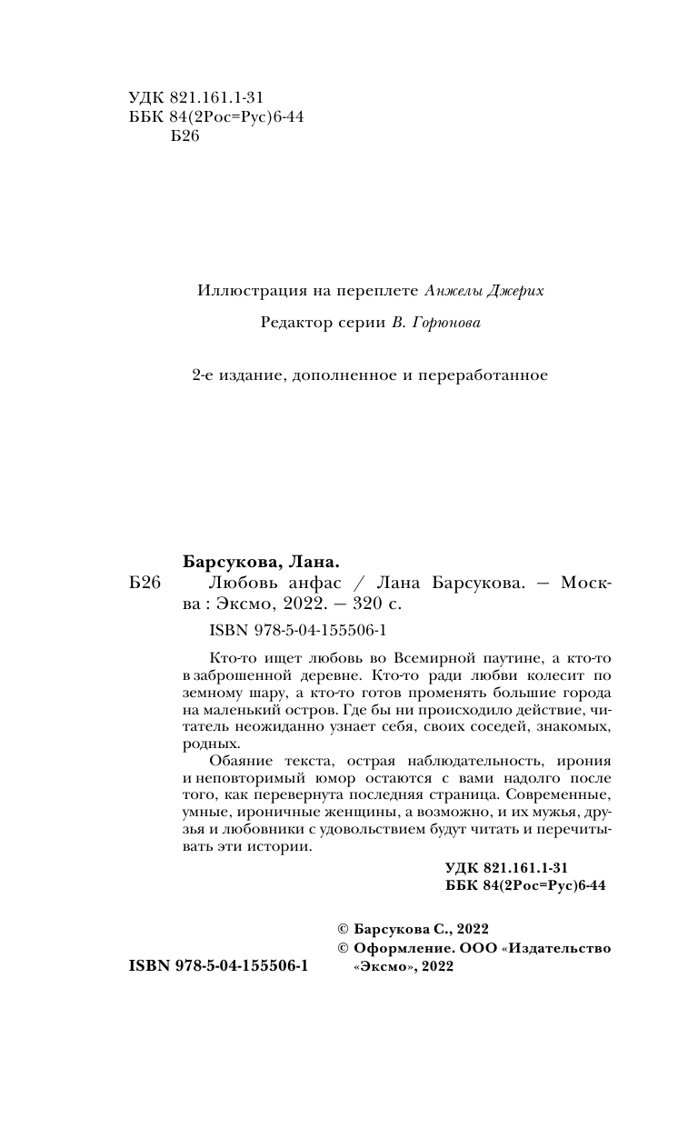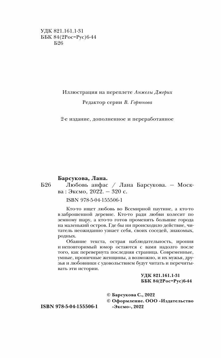 Любовь анфас (новое издание) (Барсукова Лана); ООО "Издательство "Эксмо", 2022