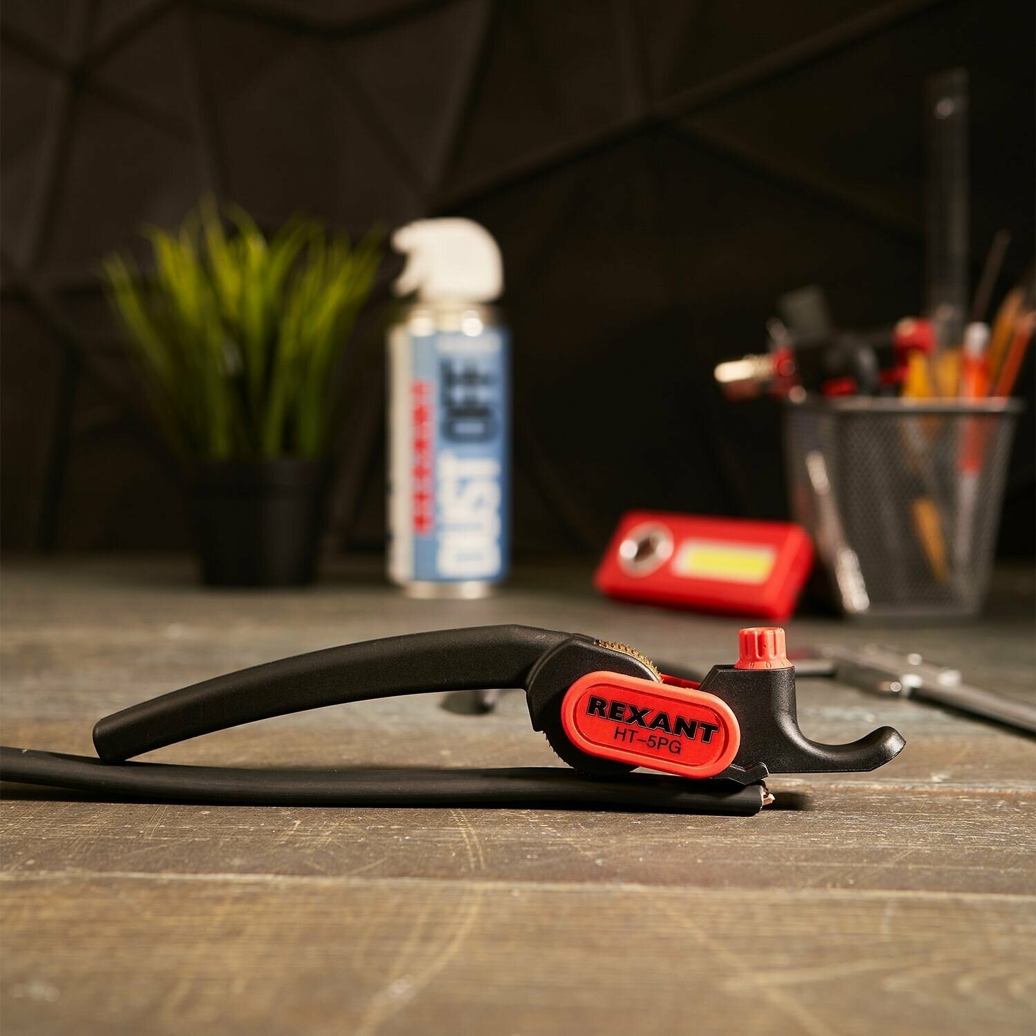 Стрипер для высоковольтного кабеля Rexant (HT-5PG) предназначен для зачистки внешней ПВХ или Silicon изоляции силового кабеля в диаметре от 25 мм. Инструмент уникален тем, что позволяет выполнять разрезы на кабеле в любом необходимом месте, способен выполнять все виды разрезов, подходит как для продольной, так и для поперечной резки. Изделие имеет возможность смены лезвия: сняв регулировочный винт, можно заменить двухстороннее лезвие.