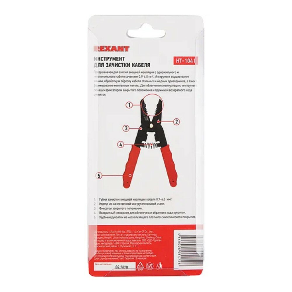 Инструмент для зачистки кабеля HT-1041 предназначен для снятия внешней изоляции одножильного и многожильного кабеля в диапазоне 0.9–6.0 мм².