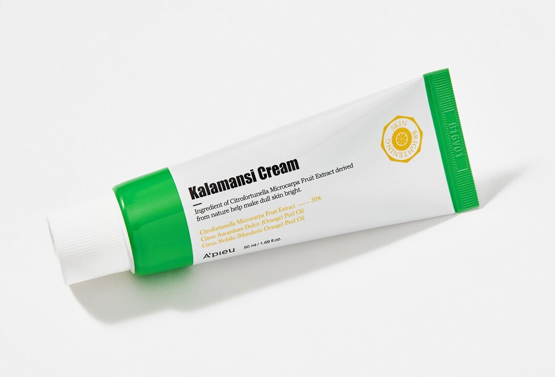 Apieu Kalamansi Cream — это осветляющий крем для лица с экстрактом каламанси. Он уменьшает выраженность пигментных пятен, устраняет тусклость и серость, выравнивает рельеф кожи и улучшает цвет лица.