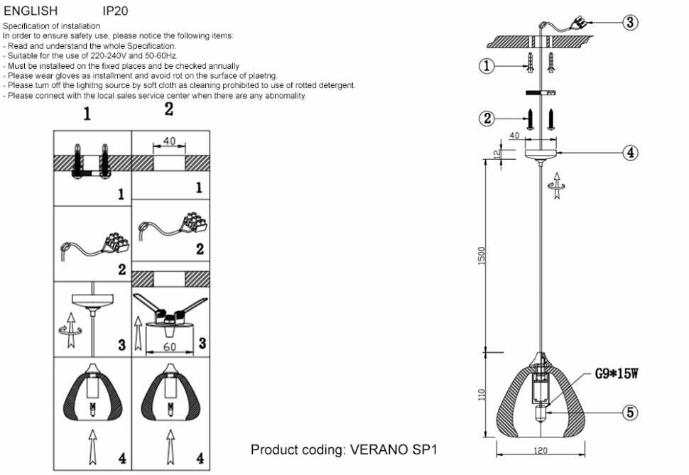 - Тип светильника: подвесной.