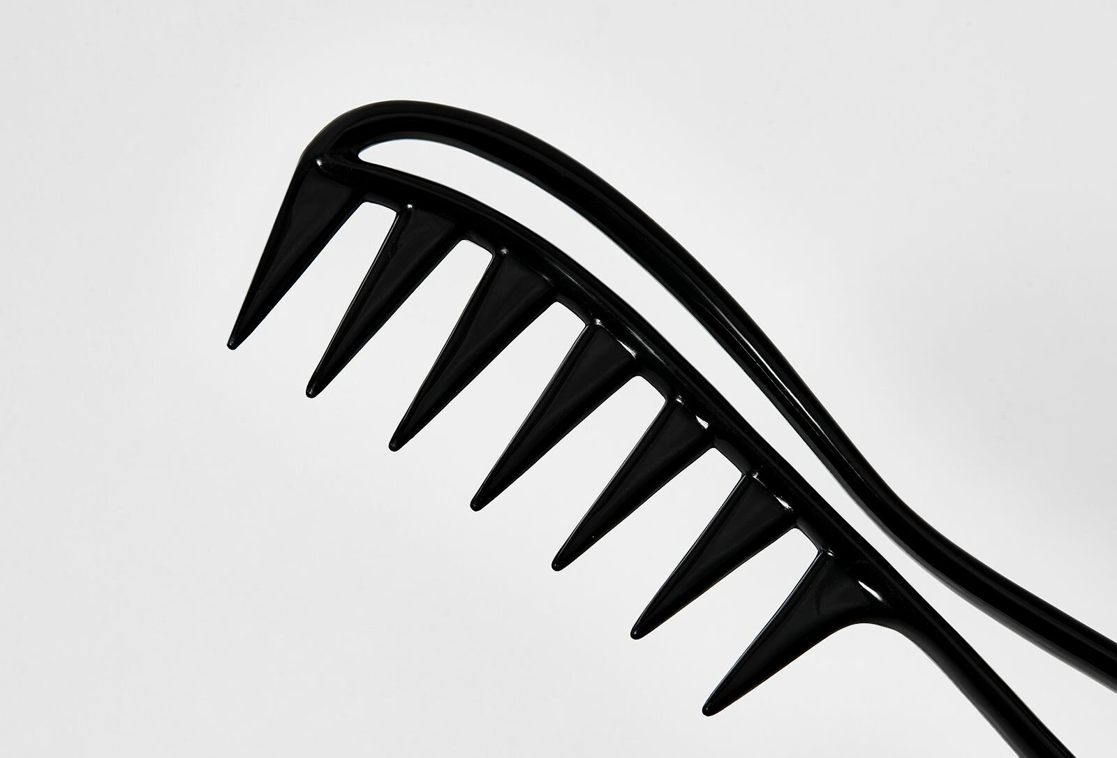 Изготовлен из ПОМ (полиоксиметилен) пластика . Гребень из такого материала очень эластичный имеет легкий вес . Устойчив к химическим средствам , деформации, истиранию.