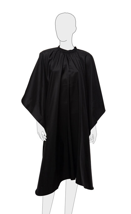 Он надёжно защищает одежду клиента салона от попадания волос при проведении стрижки, а также средств для покраски и укладки. В качестве материала для производства изделия используется современный полиэстер самого лучшего качества.