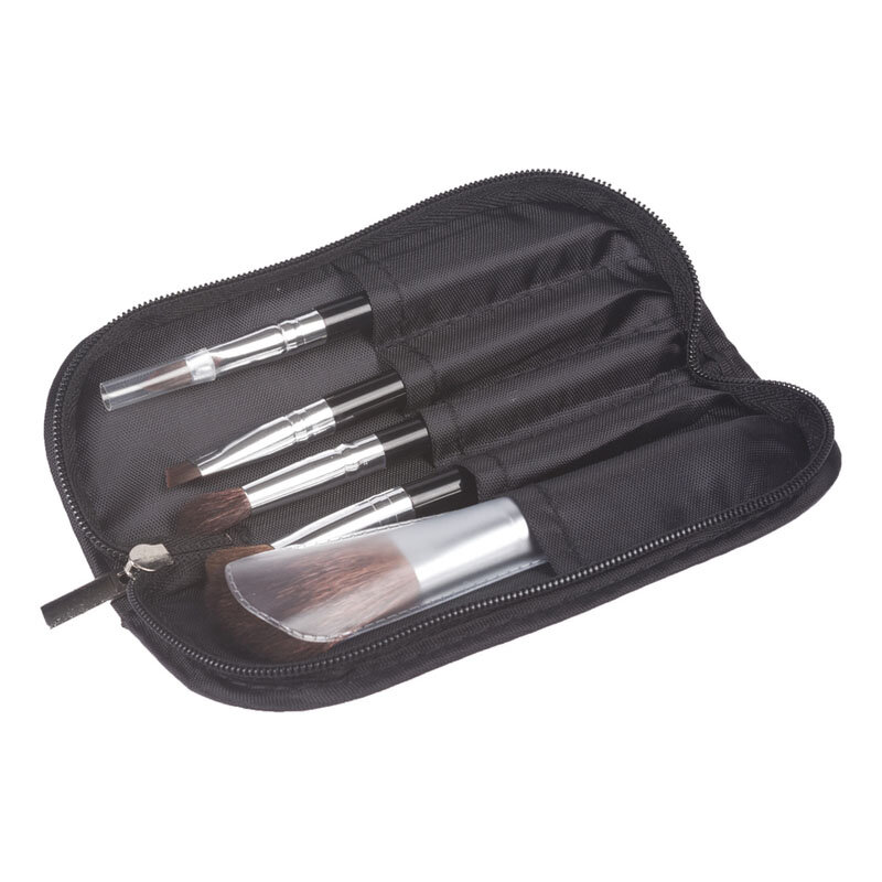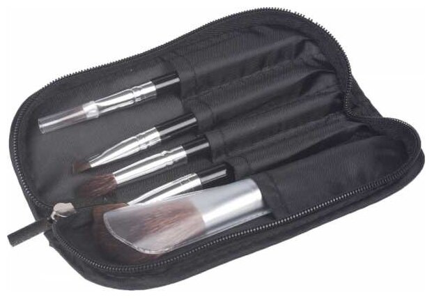 Компактный набор профессиональных мини - макияжных кистей. В набор входят: кисть для нанесения теней - 2 шт.; кисть для губ; кисть для румян; кисть для подводки контура глаз и коррекции бровей.
