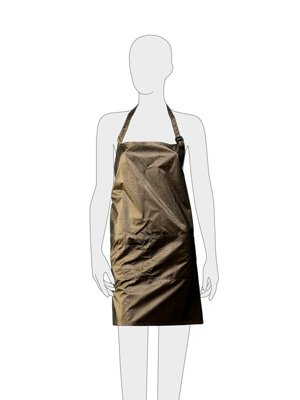 Качественный полиэстер, используемый при изготовлении этой модели фартука, долговечен при интенсивной эксплуатации и достаточно прост в уходе. Фартук имеет широкую регулируемую верхнюю лямку, длину которой удобно отмерить и надёжно закрепить, по личным параметрам фигуры, а также комфортное крепление пояса.