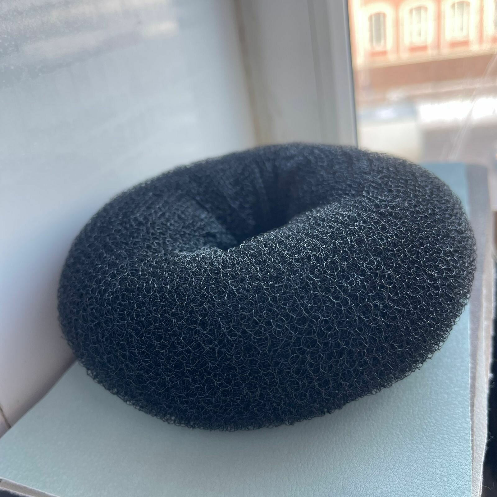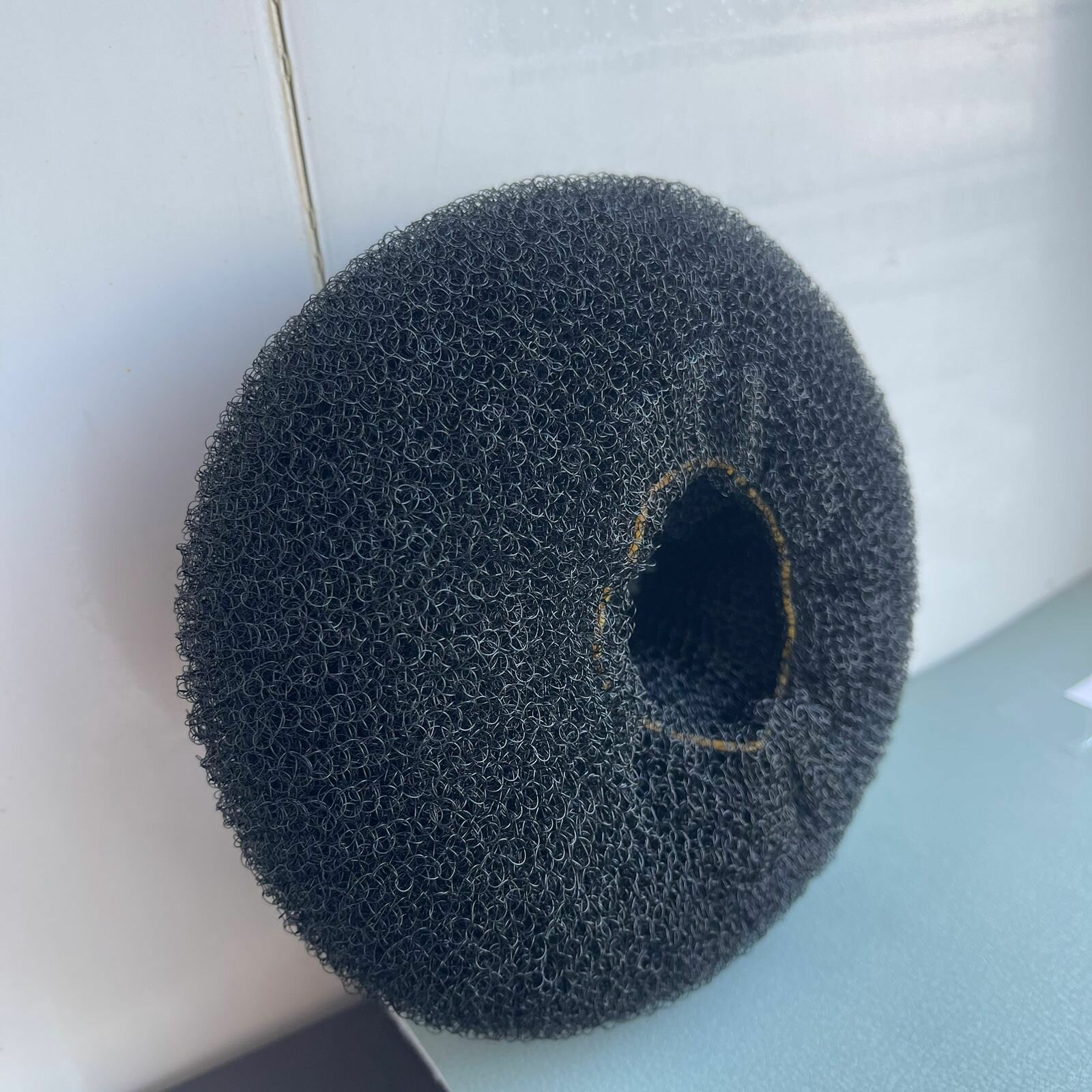 Валик круглый черный, губка DEWAL HO-5117L Black – надежная основа для пучка не менее 14 см диаметром. Валик представляет собой свернутую кольцом черную синтетическую губку. Сетчатая структура надежно удерживает волосы в прическе, не давая им выскальзывать. Черный валик подходит для брюнеток.