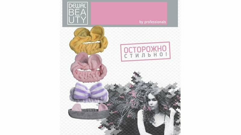 Повязка на голову Dewal Beauty "завязка" - изящный аксессуар для фиксации волос во время проведения самых важных ежедневных процедур: очищение, нанесение крема, масок и макияжа.