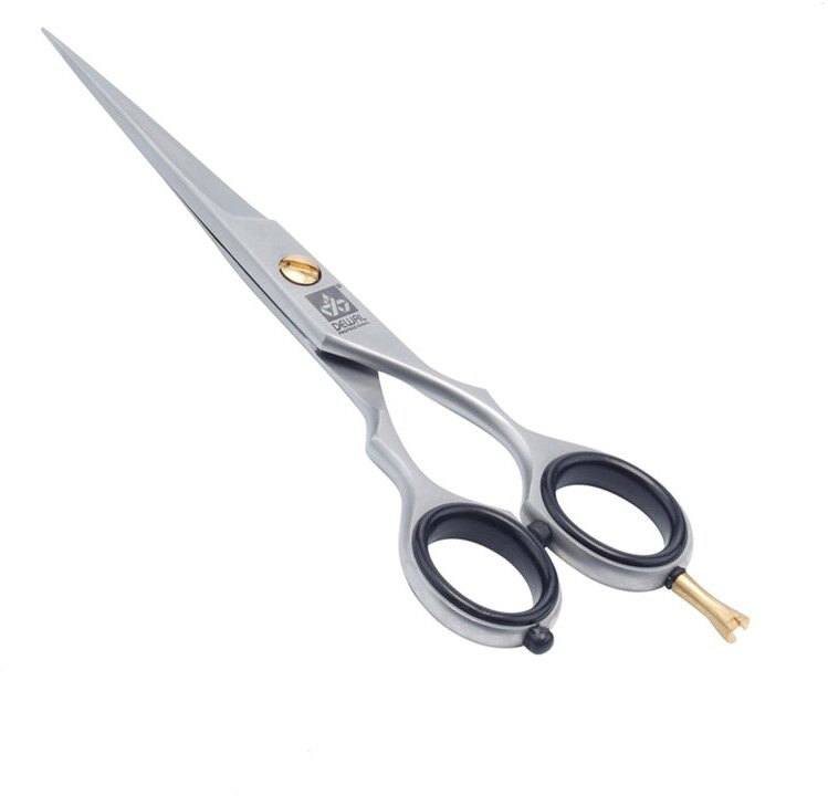 Ножницы имеет классическую форму и соединены при помощи простого винта, обеспечивающего плавный и мягкий ход ножниц. Винт легко подтянуть или снять для осуществления регулировки и очистки конструкции ножниц от пыли.