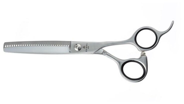 Данная модель имеет длину 6 дюймов, на одном из двух полотен имеются 30 специальных зубцов, которые обеспечивают частичный срез объема волос для осуществления филировки.