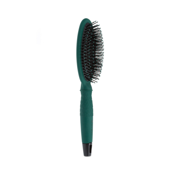 Щетка продувная для укладки волос серии INTENSE с нейлоновой щетиной. Невероятно красивый цвет - темной хвои в сочетании с черным! Оригинальный рисунок на ручке способствует противоскользящему эффекту.