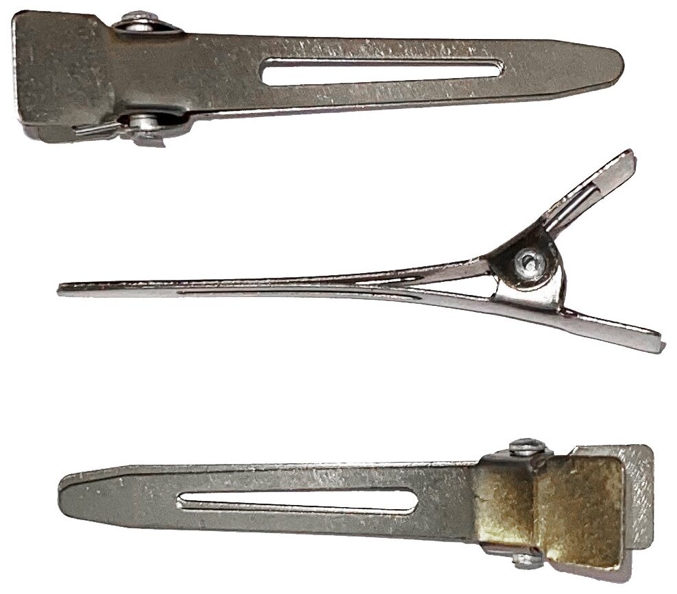 Зажимы – неотъемлемые аксессуары при создании причесок, стрижек, макияжа в работе каждого мастера, парикмахера, визажиста. С помощью зажимов можно сделать эффектные прически, например, голливудские локоны. Зажимы также помогают крепить пряди при создании вечерних и праздничных причесок, в основном, на длинных локонах и прядях средней длины. Мы позаботились о том, чтобы у вас под рукой всегда были доступны в нужном количестве эти аксессуары. И предлагаем новую, удобную упаковку. Зажимы по 50 шт/уп. Профессиональные аксессуары – залог отличной работы!
