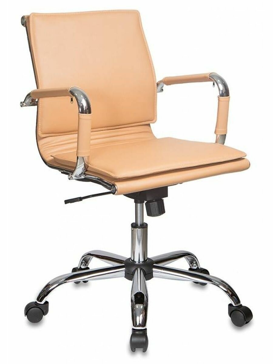Кресло руководителя «Бюрократ» /CAMEL современного дизайна изготовлено из высококачественных материалов, обеспечивающих не только привлекательный внешний вид, но и комфортное, долговечное использование. Его конструкция оснащена низкой эргономичной спинкой из искусственной кожи, регулировкой высоты с помощью газлифта и металлической крестовиной, оснащенной вращающимися колесиками, которые не испортят напольное покрытие и помогут беспрепятственно перемещать кресло.