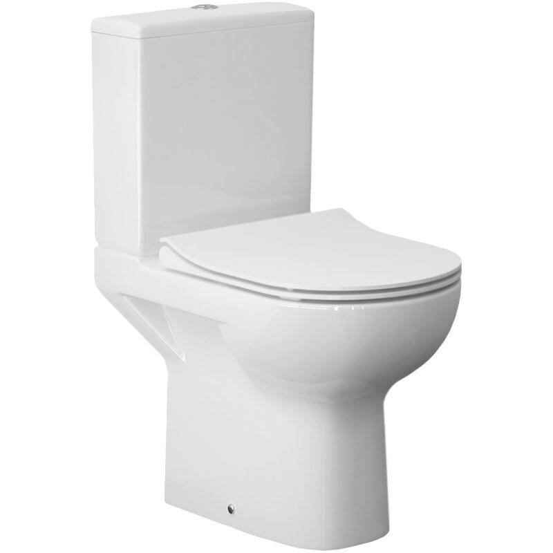 Безободковый напольный унитаз с тонким быстросъемным дюропластовым сиденьем, оснащенным системой плавного закрывания (микролифтом). Горизонтальный выпуск. Двойной смыв: 3 и 6 л. Отсутствие внутреннего нависающего обода полностью решило проблему труднодоступных мест. С технологией CleanOn унитаз дольше остается чистым и безопасным. Эргономичная и изогнутая форма форсунки: вода впрыскивается под высоким давлением и тщательно омывает чашу, удаляя загрязнения.