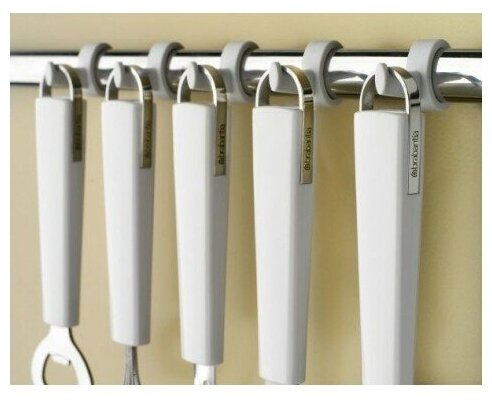• Имеются сочетающиеся по стилю настенные держатели (рейлинги) с перемещаемыми крючками, все кухонные принадлежности всегда под рукой.