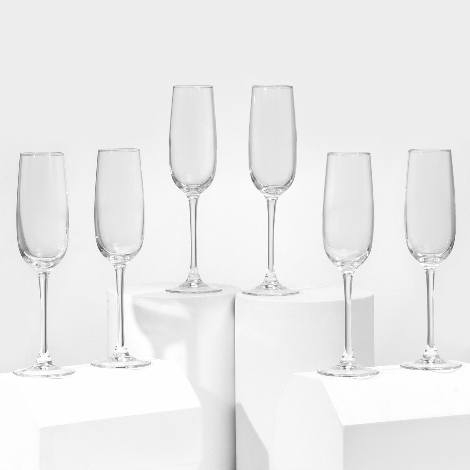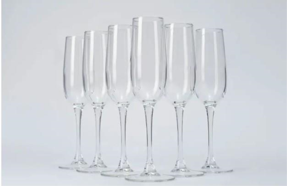 Главные отличия — классическая форма флюте, прочное машинное стекло, отсутствие декора и универсальность: подходят для дома, дачи, подарка, сервировки стола.