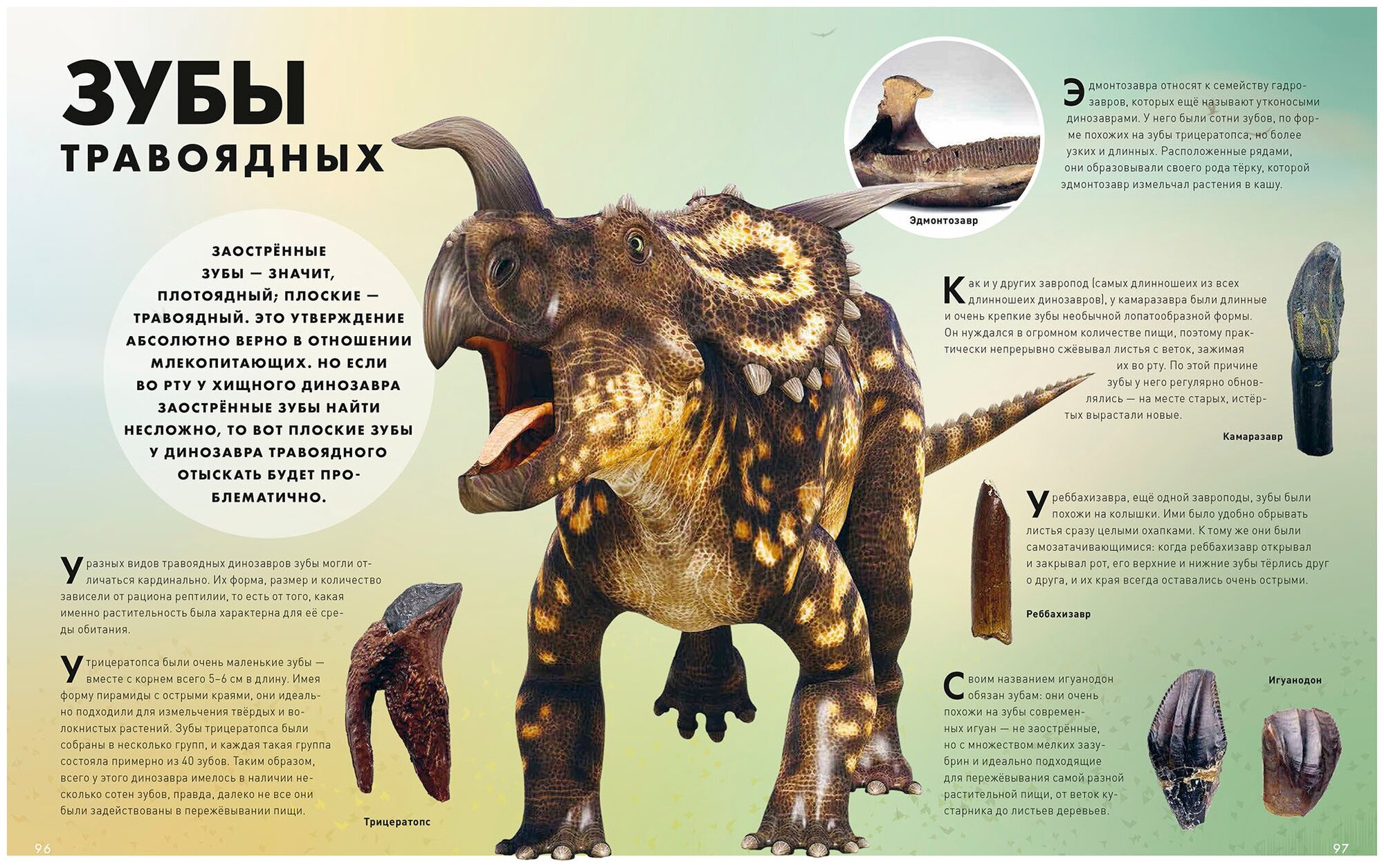 Реалистичные иллюстрации, десятки инфографических таблиц, точные с научной точки зрения тексты, подходящие для юных читателей. Для каждой категории - хищные, травоядные, водные и летающие динозавры - описаны наиболее важные и наиболее любопытные виды. Плюс раздел об исчезновении динозавров, с таймлайном и анализом причин. Описано 60 видов по схеме анкеты: фотка + место, время обитания + вес, рост + черты, привычки + fun fact.